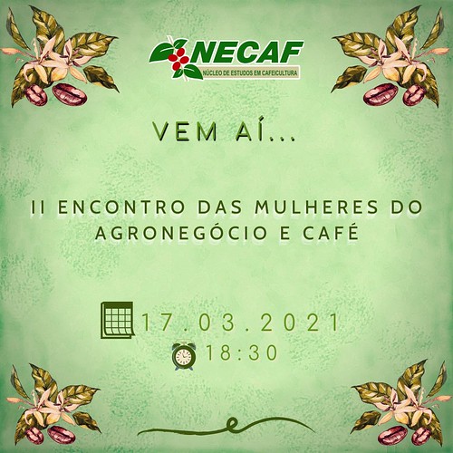 O Núcleo de Estudos em Cafeicultura (NECAF), da Universidade Federal de Lavras, e o IF Sudeste – Bom Sucesso, convidam os cafeicultores para o “II Encontro das mulheres do agronegócio e café”, no dia 17 de março, às 18h30.