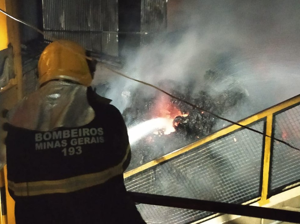Bombeiros combateram incêndio em empresa de Elói Mendes (MG) — Foto: Corpo de Bombeiros