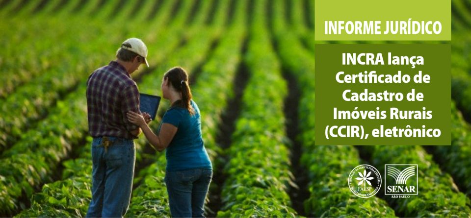 Segundo o departamento jurídico da FAESP, o CCIR, emitido pelo INCRA, é o documento que constitui prova de cadastro do imóvel rural, sendo indispensável para desmembrar, arrendar, hipotecar, vender ou prometer em venda e para partilha amigável ou judicial.