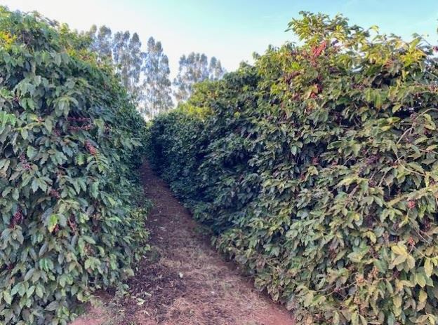 O porte médio das plantas tem se mostrado favorável, pois aumenta o tamanho da copa e resulta em maior área produtiva.