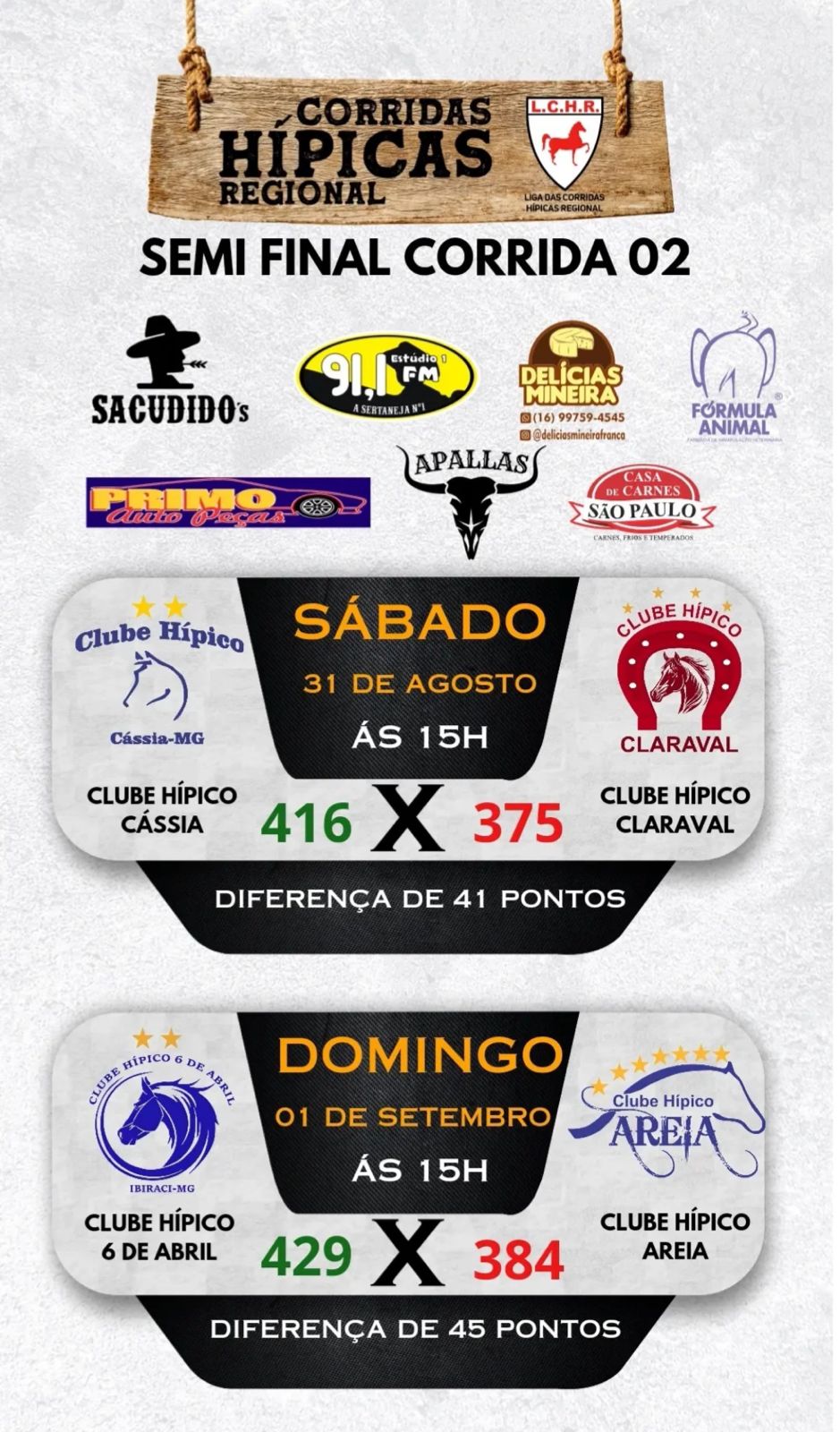 Após a segunda fase da semi finais, o Clube Hípico Cássia enfrentou o Clube Hípico Claraval, que venceu por 416 a 375. Com a diferença de 41 pontos.
